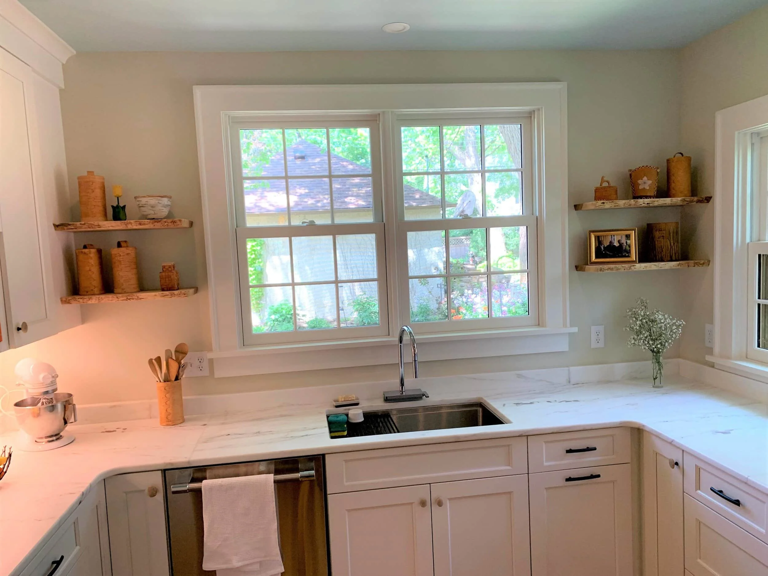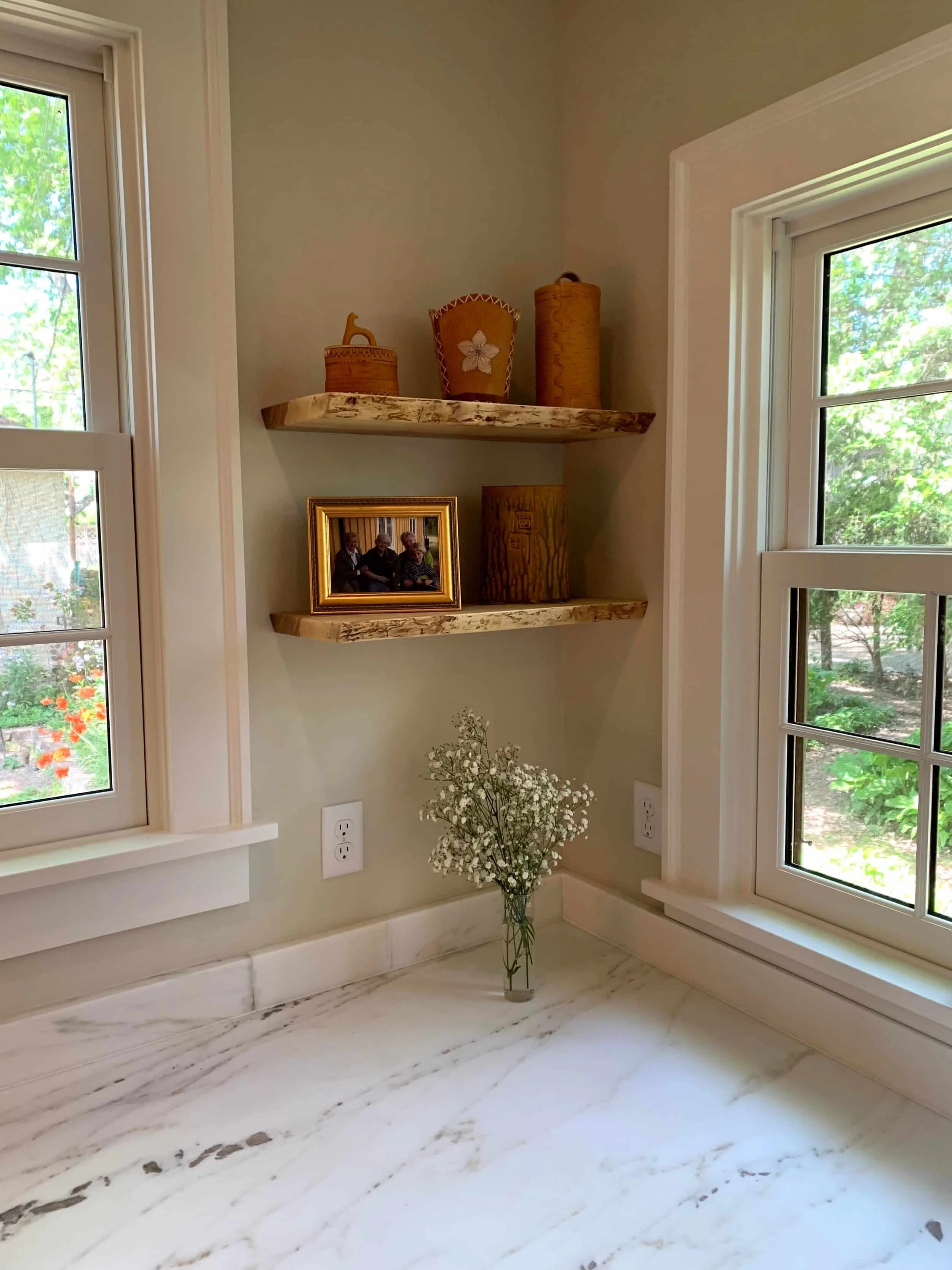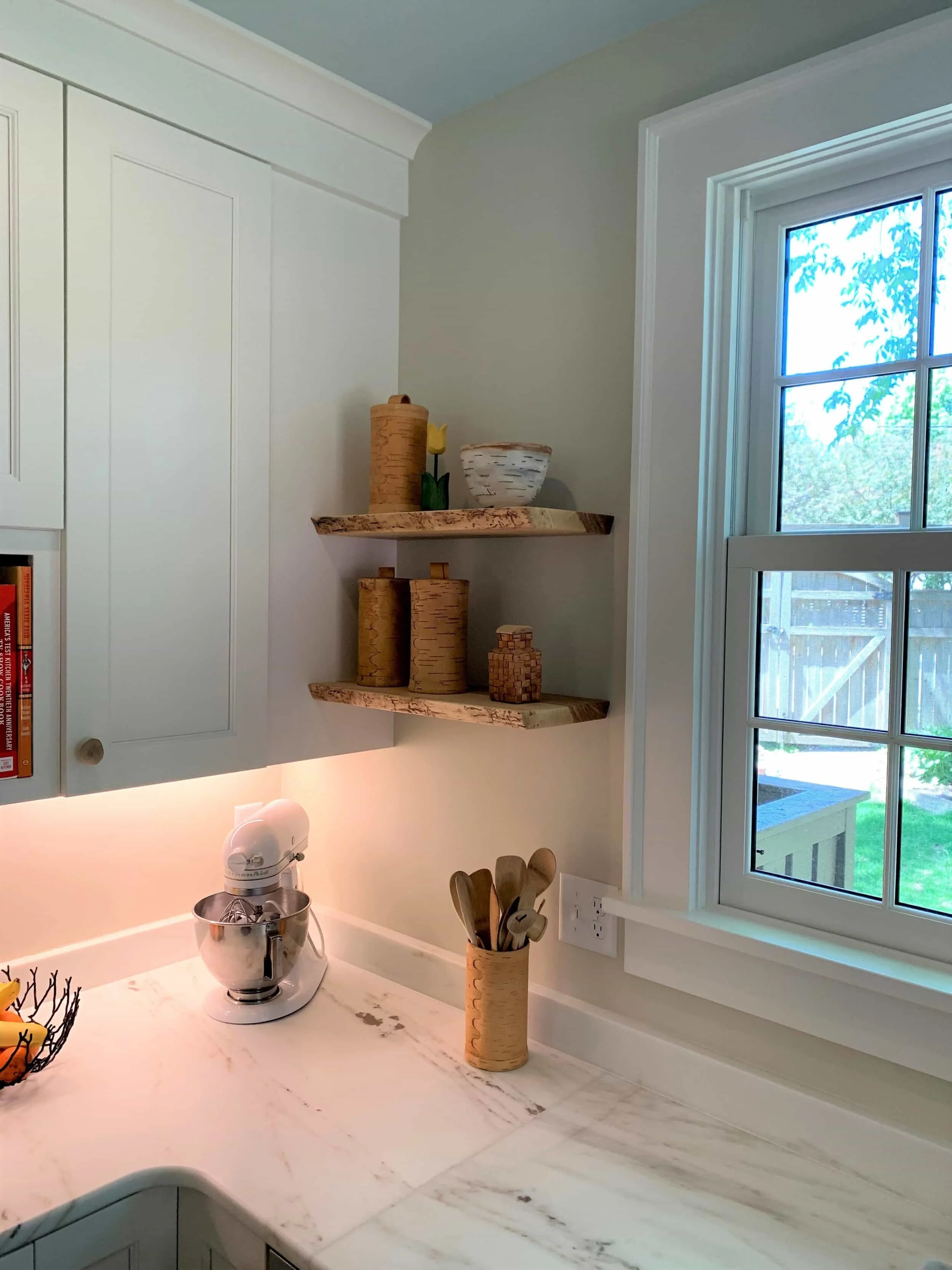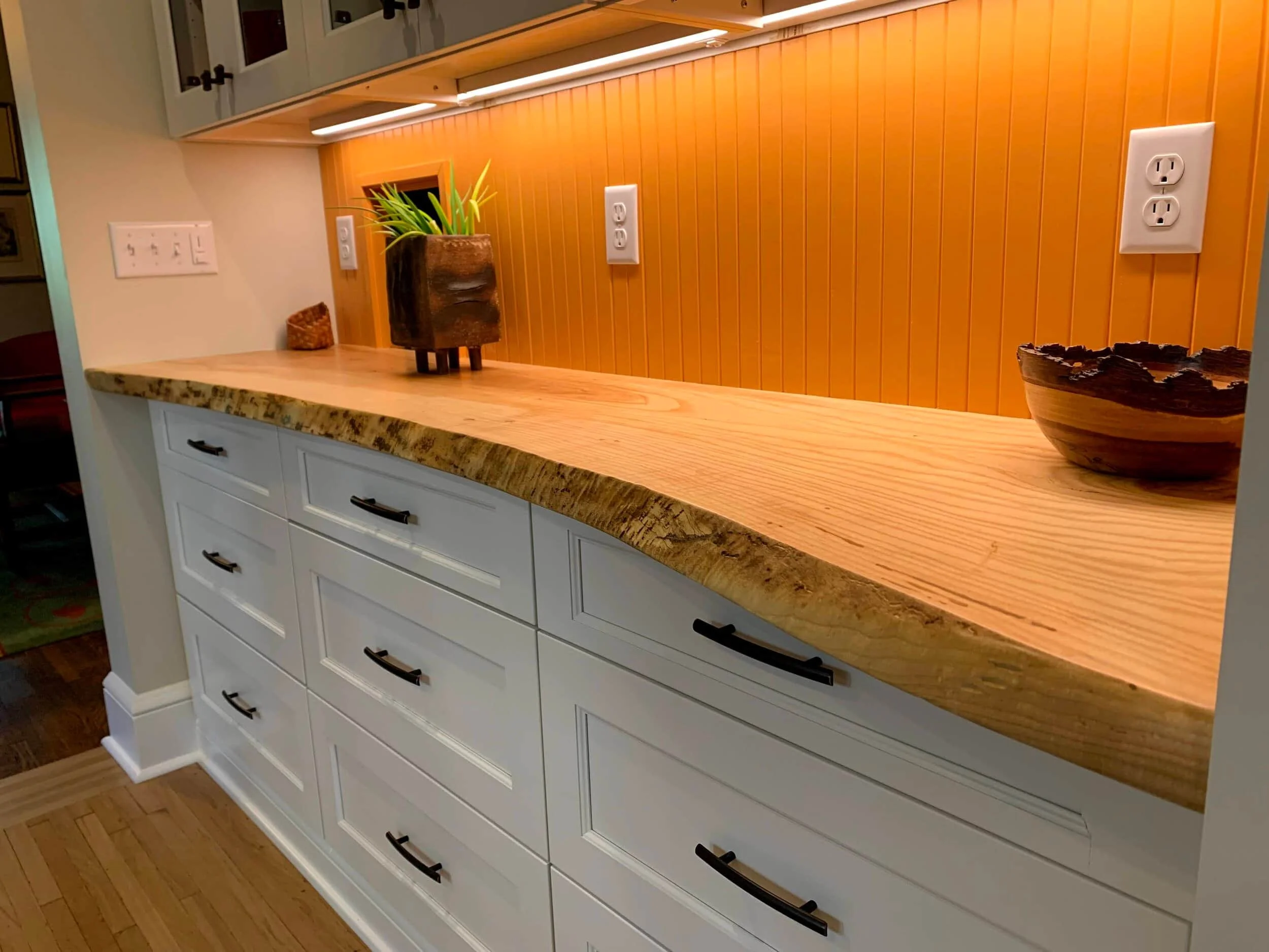 Ash Live Edge Kitchen Counter and Floating Shelves