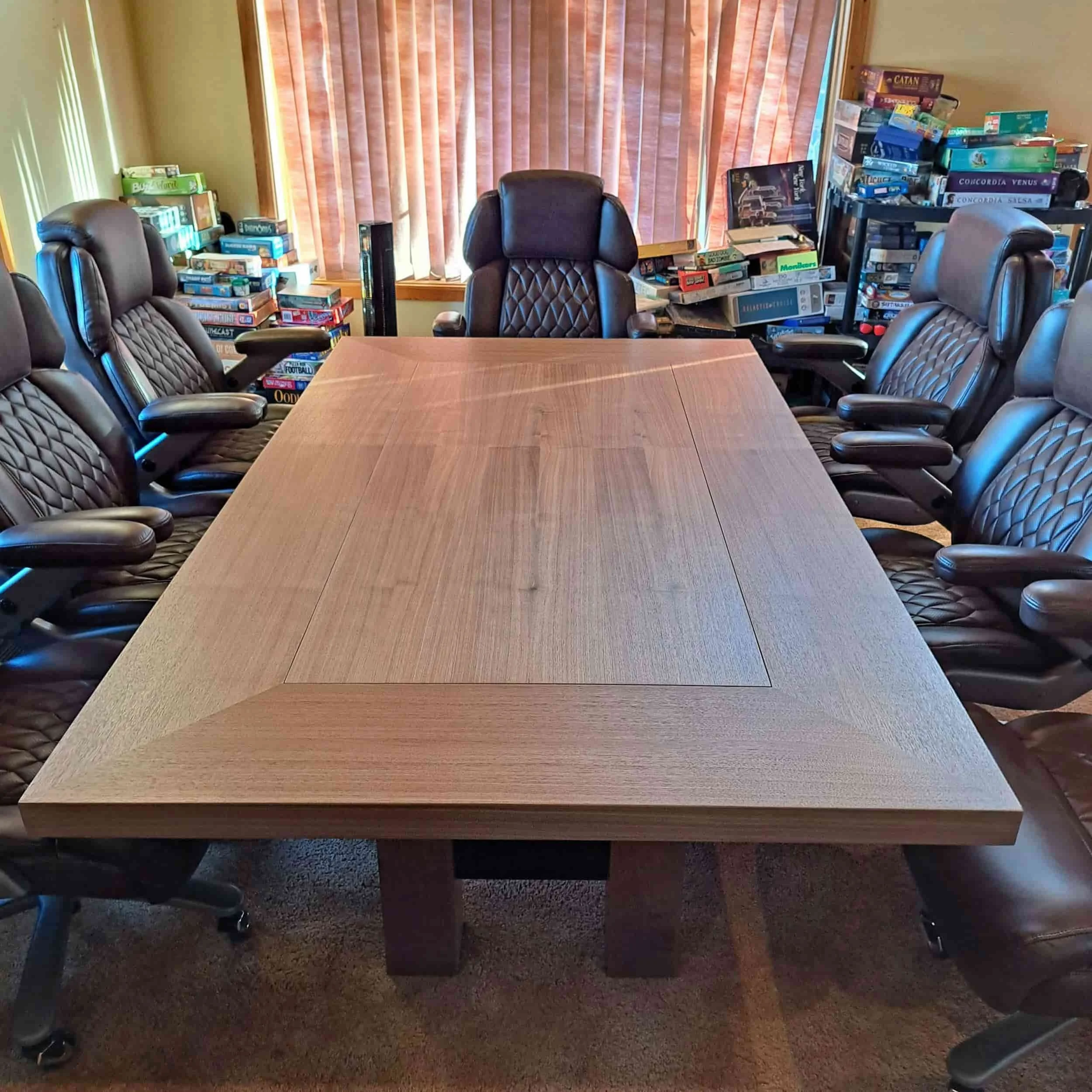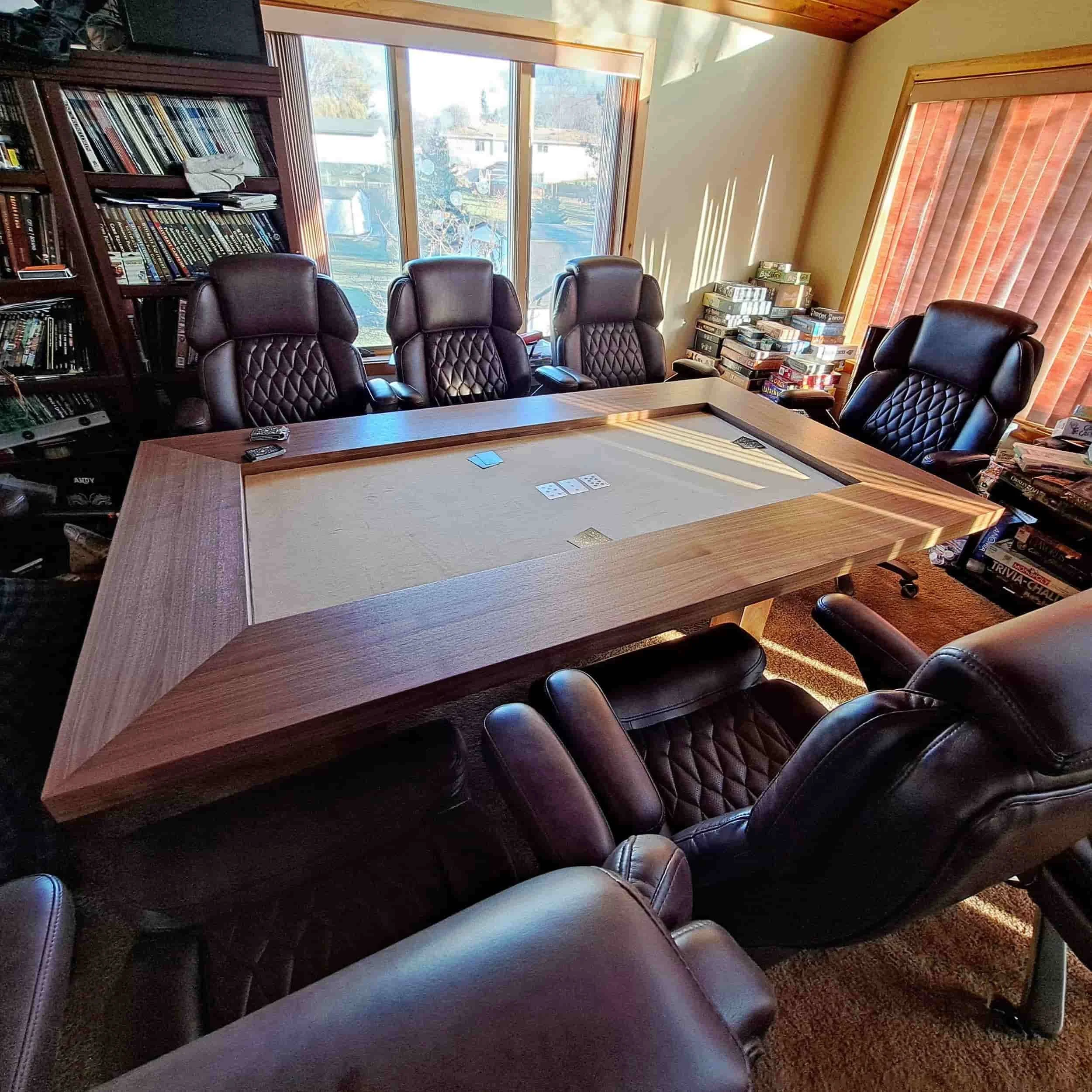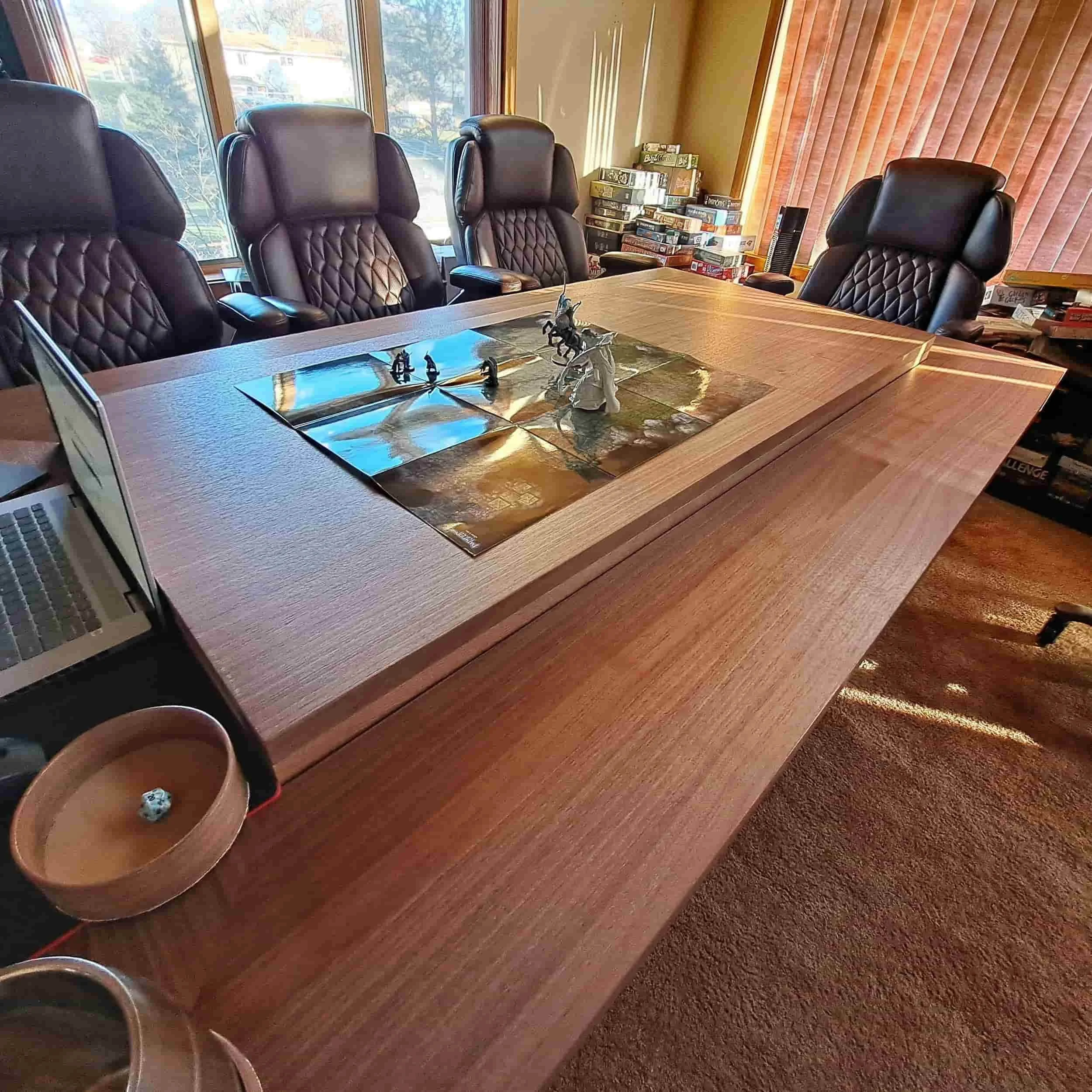 The table center is veneered in walnut for use with board, computer, RPG games and as a general table.