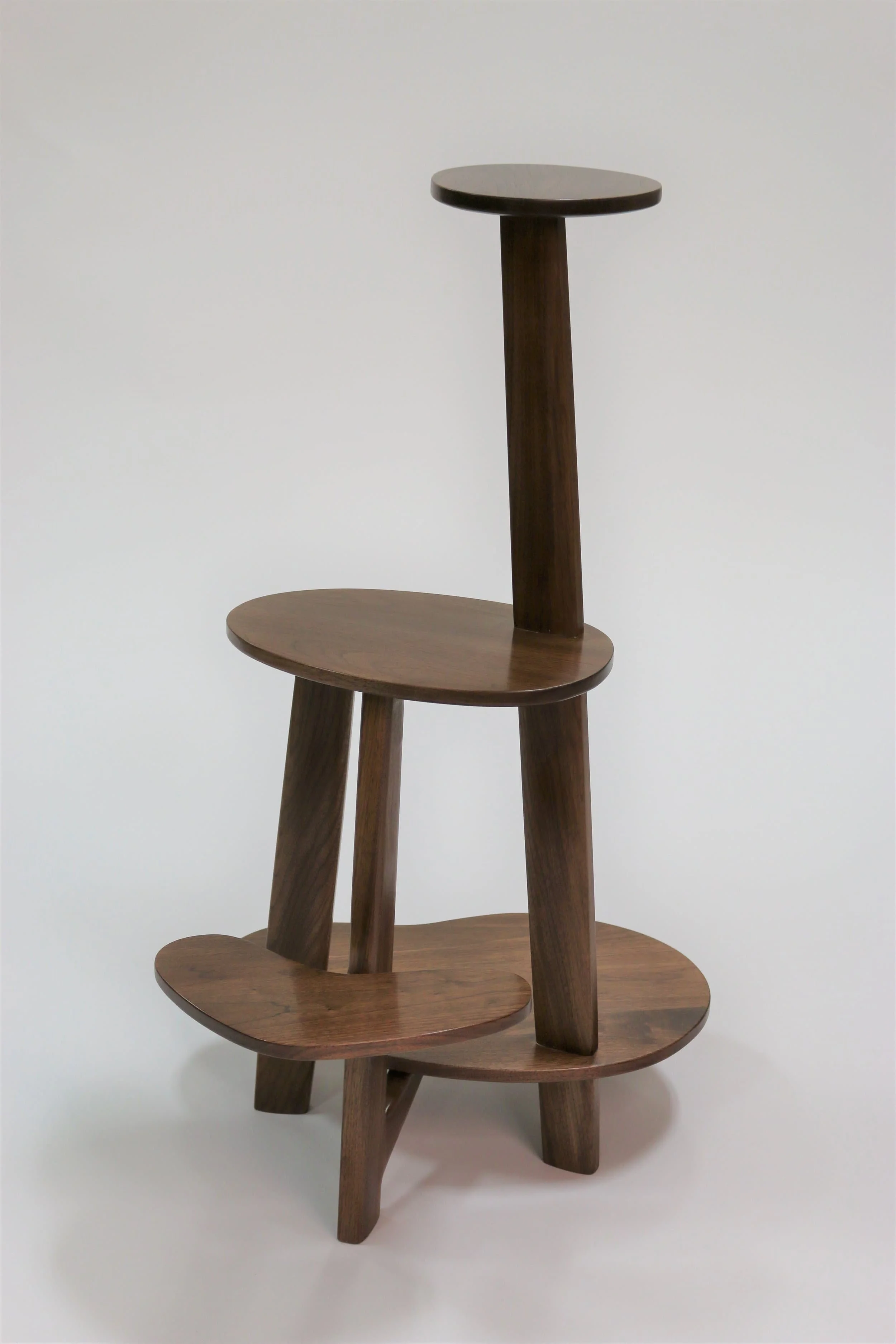 I’ve made several versions of this Mid-century Modern Plant stand. One was small at 36” and two larger at 60” tall. They reside in Minneapolis, rural Connecticut, and Atlanta. Each of the stands is comprised of groovy mid-century shaped platforms. The platform shapes, sizes, and positions were designed to meet each customers’ specific needs. For each customer I made a scale model so they could accurately understand what the design looked like. Trying to do this via sketches would be too difficult.