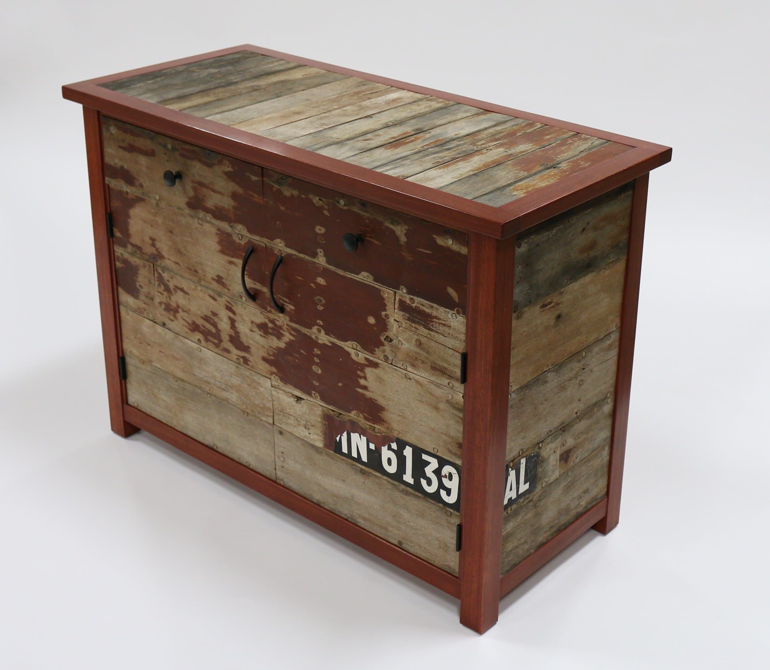 Once the cabinet was completed my customer commissioned a matching drink tray. The handle holes in the sides are the original gas tank vent holes in the decking.