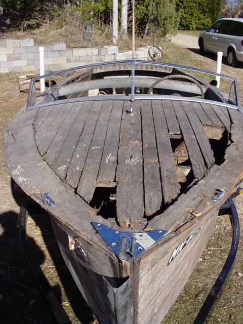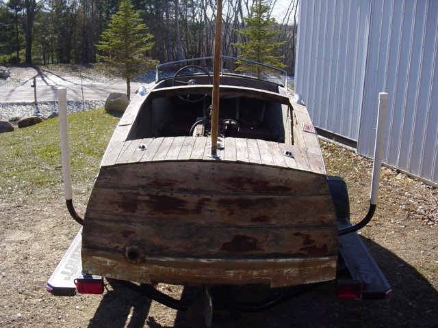 This is the story of the rebirth of MN-6139 AL as a cabinet. Growing up, my customer was endlessly intrigued by the mysterious wooden boat by the lake at their Minnesota cabin. Eventually he learned that his grandfather purchased the boat in 1959, and had it moved to his then new cabin. The grandfather operated the boat for two seasons in 1959 and 1960, and damaged the boat both times by striking submerged rocks. After the 1960 season, the boat was laid up on a base of railroad ties next to the lake. There it sat until 1992 when my customer’s father gave him the boat for eventual restoration. The boat has remained in covered dry storage since then.