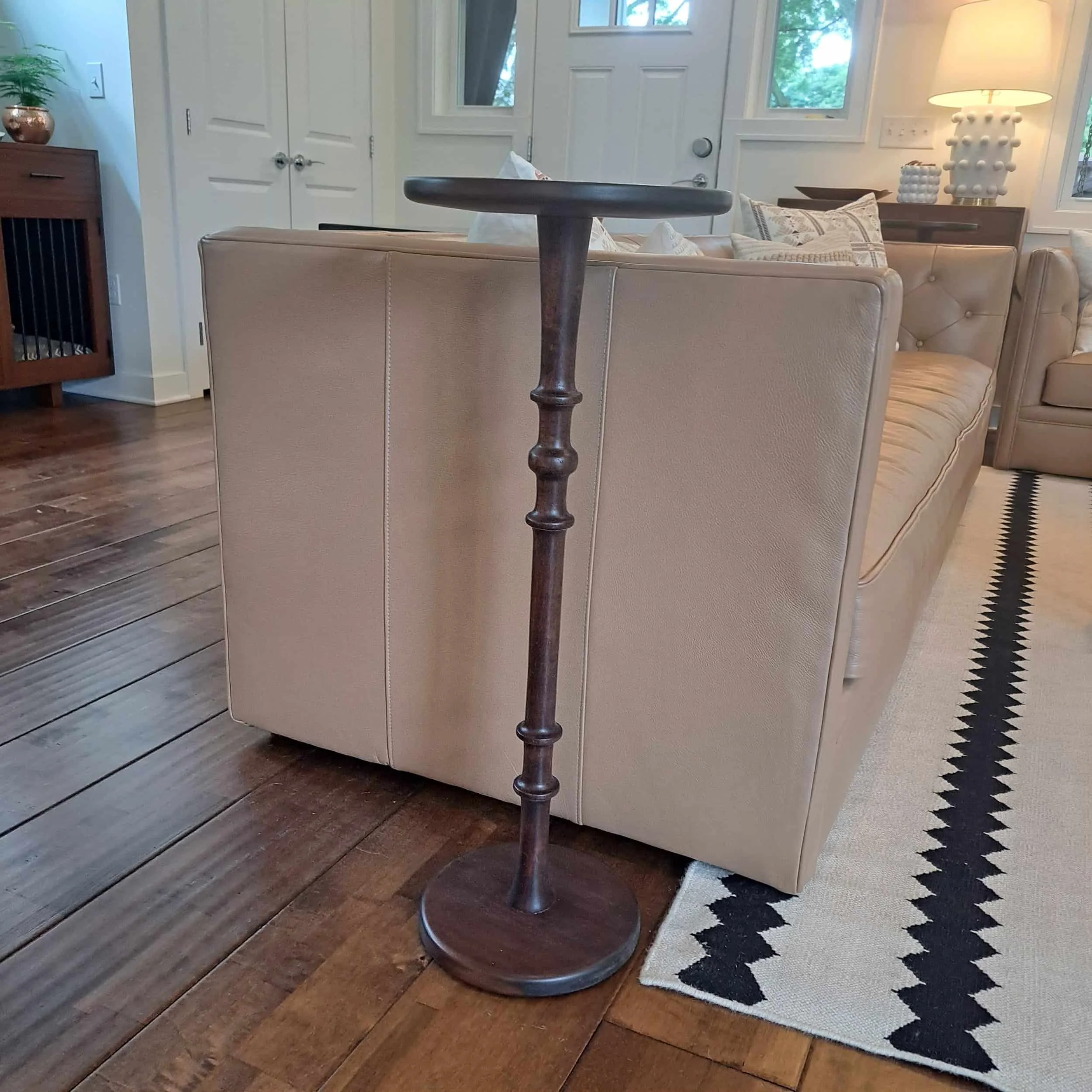Their diminutive size and graceful shaft complement the decor nicely. A perfect perch for a cup of coffee or a cocktail.
